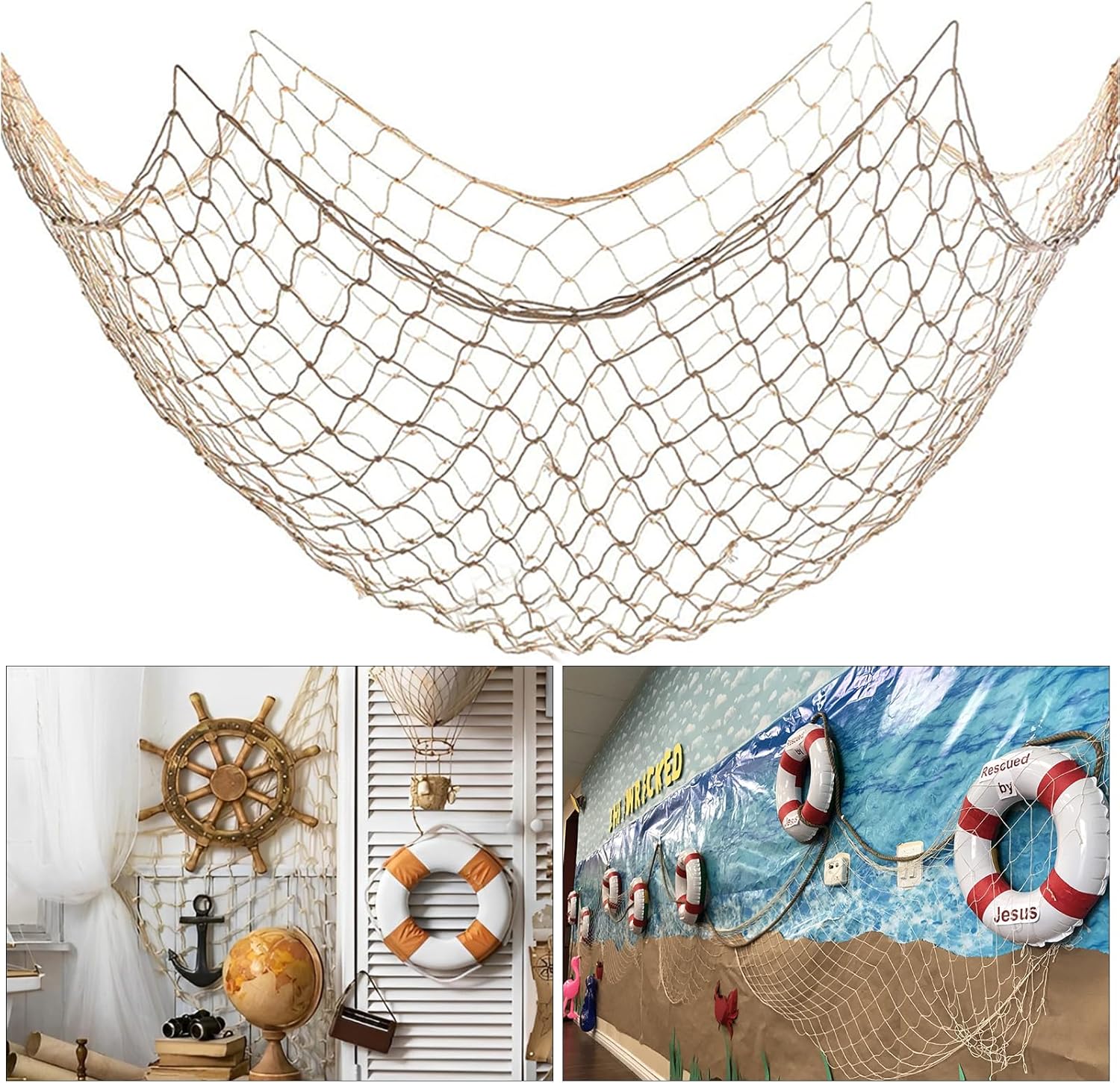 Fish Net Decorations for Party, 2mm Natural Cotton Hawaiian Party Fish Net Decorative, Nautical Themed Cotton Fishnet Room Under The Sea Ocean Beach Party Decor (1)